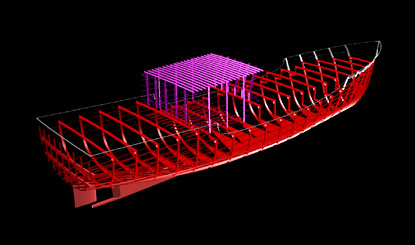 | We can build the boat virtually, looking at how the framing goes together, how the interior fits into the boat, where there is another corner for a tank. | |