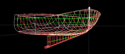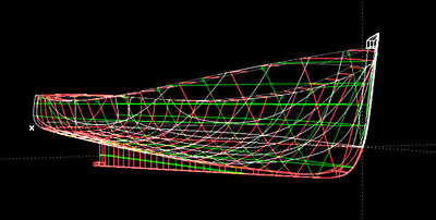 | The computer lets us get lots of work done fast - in fact, we would probably need two more draftsmen if we were still doing everything by hand - but more important, it makes changes easy, so we can respond to changed needs or optimize the hull, looking for just the right balance between speed, efficiency, and seaworthiness. We now routinely look at several versions of any new hull, many more than would be cost-effective if everything were faired by hand. |